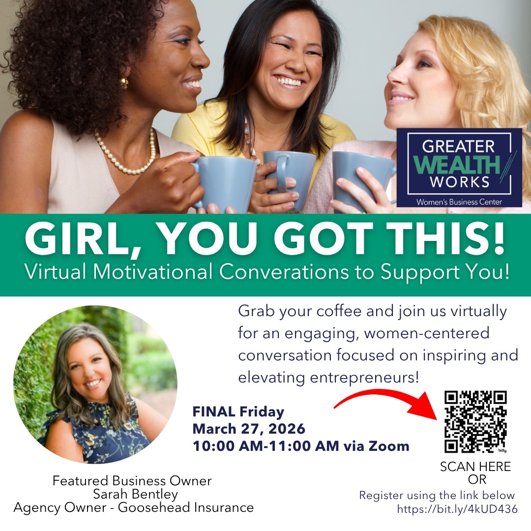 Hosted by Rachel Davis and the Greater Wealth Works Women’s Business Center